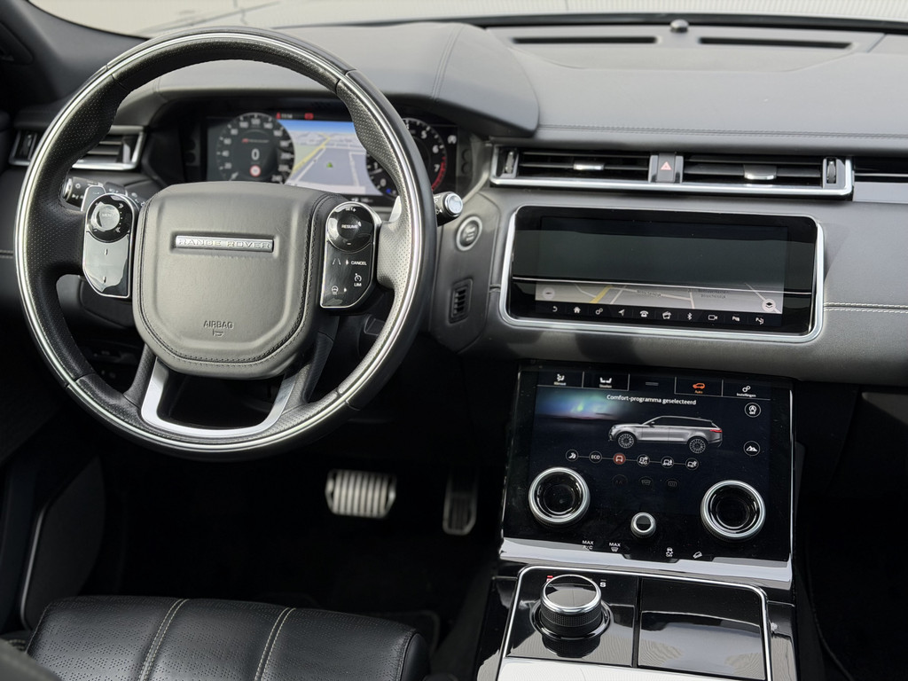 In keurig nette staat verkerende Range Rover Velar R Dynamic HSE met fantastische optielijst. Origineel Nederlands geleverde auto met NAP en volledig Land Rover dealer onderhouden. Auto staat op een originele en volledig nieuwe set 22 inch velgen met nieuwe Pirelli P Zero banden, dus ook de velgen zijn volledig schadevrij.